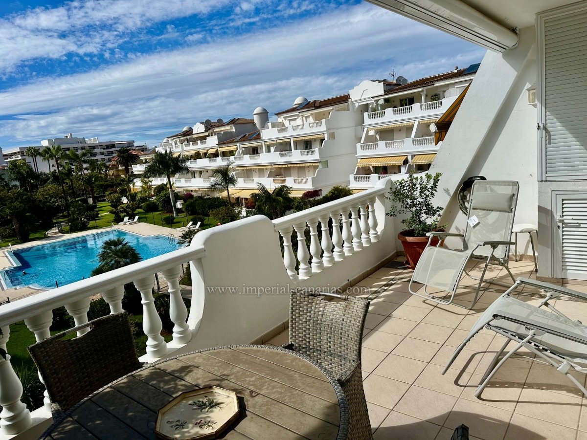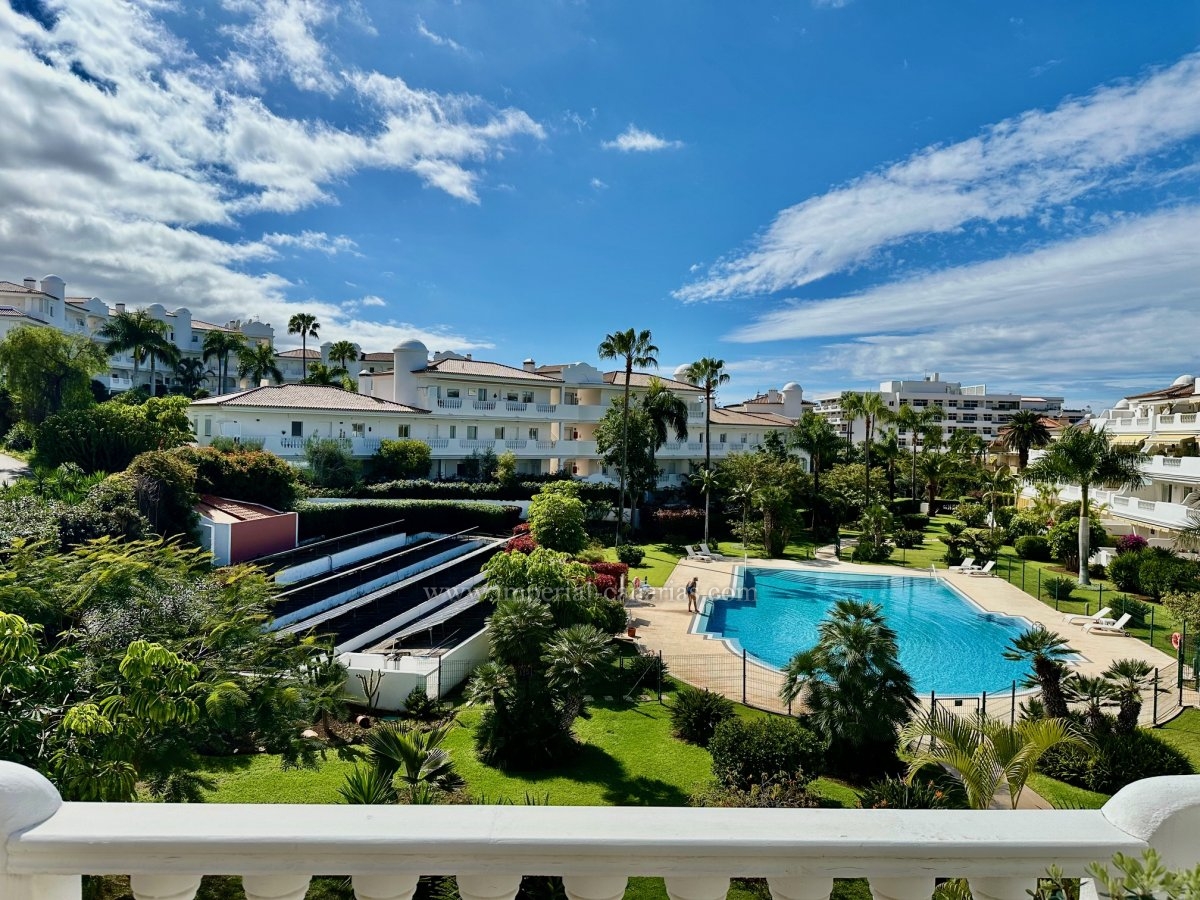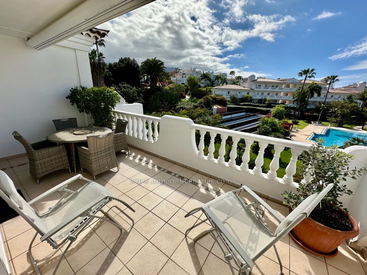 Esta exclusiva propiedad goza de amplios jardines comunes y una piscina climatizada. Su selecta orientación hacía Oeste le garantiza el sol por la tarde y unas vistas espectaculares al Teide.