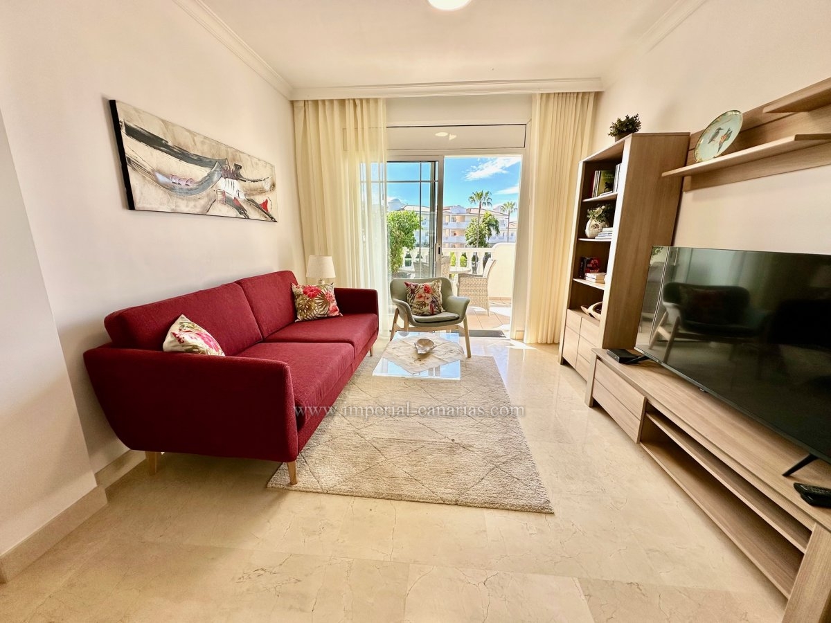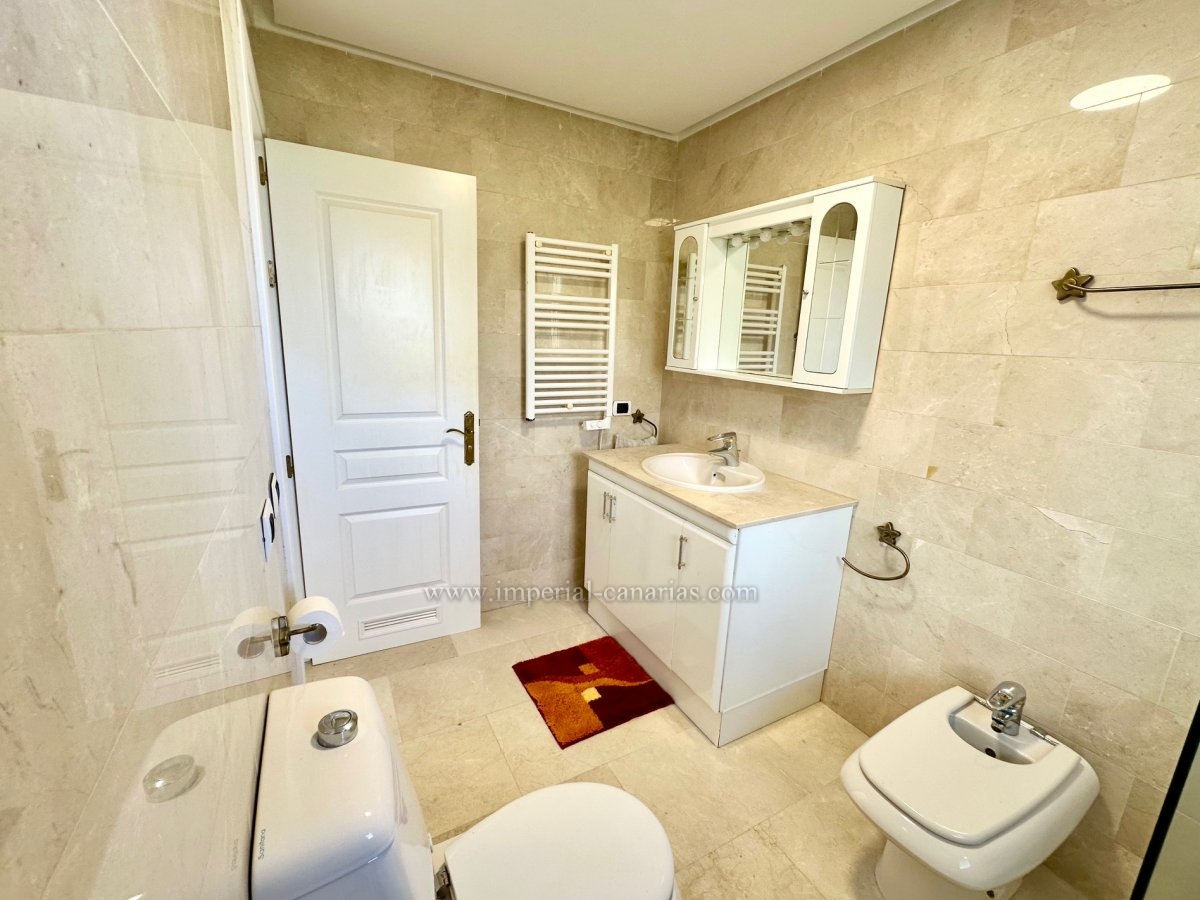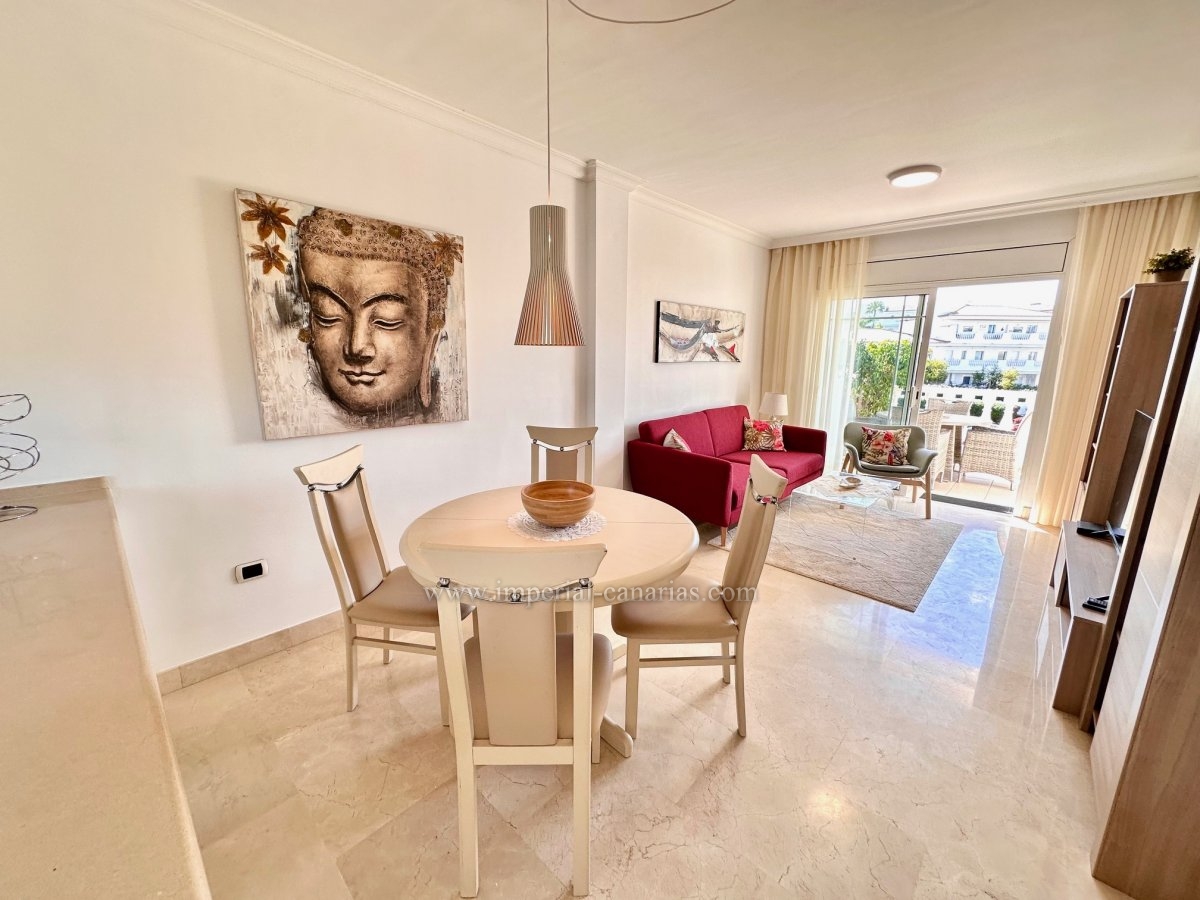 Esta exclusiva propiedad goza de amplios jardines comunes y una piscina climatizada. Su selecta orientación hacía Oeste le garantiza el sol por la tarde y unas vistas espectaculares al Teide.