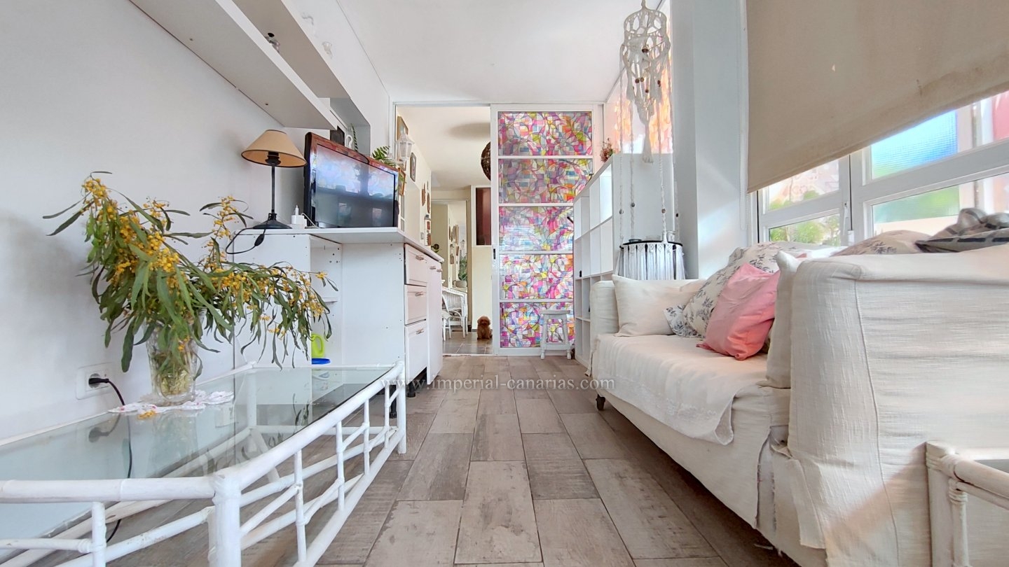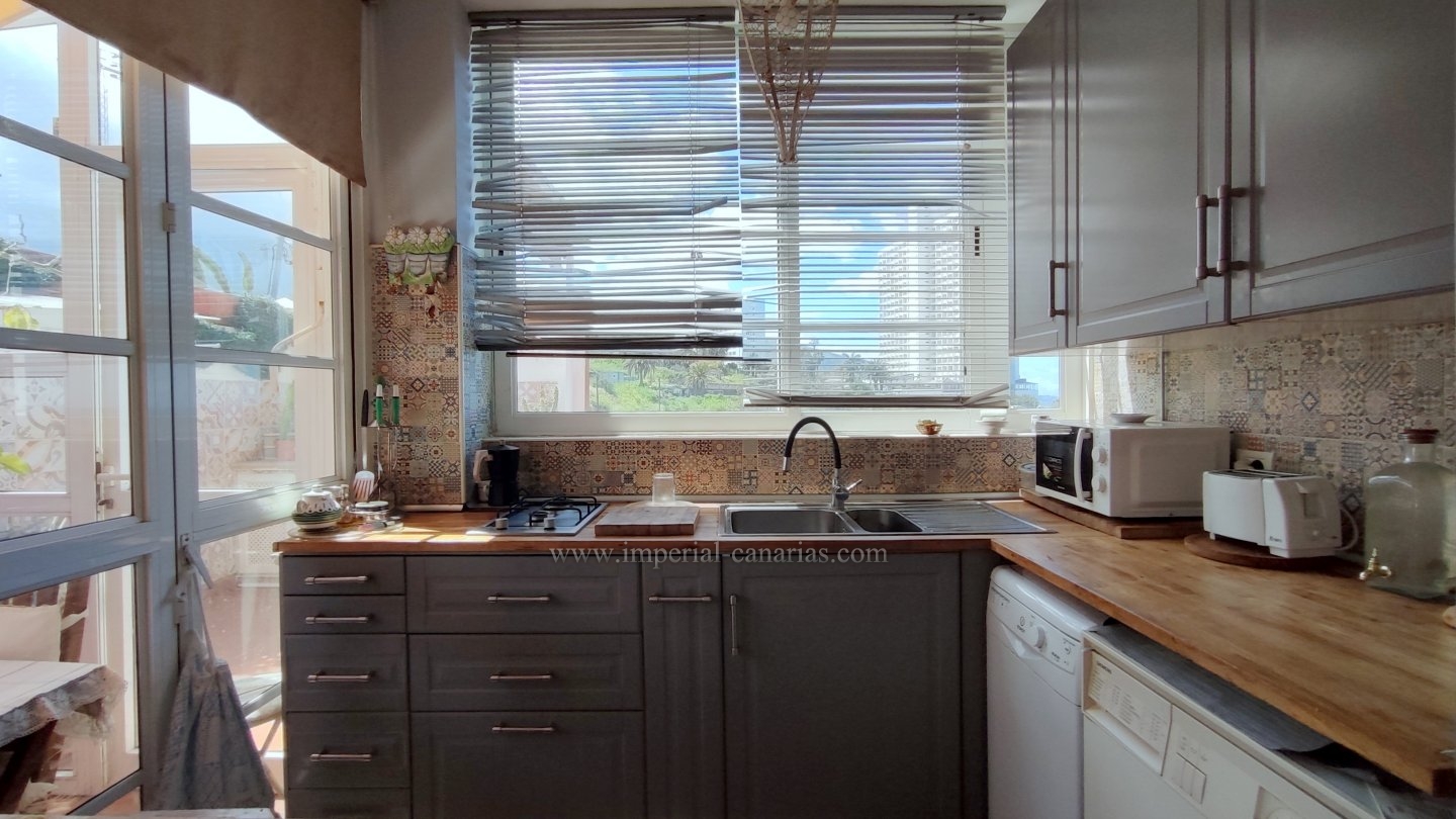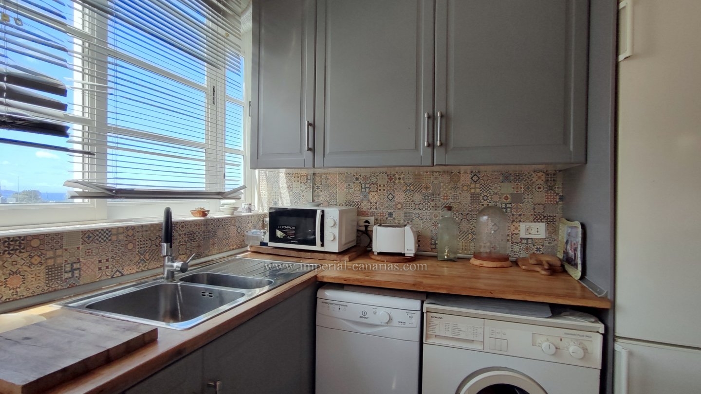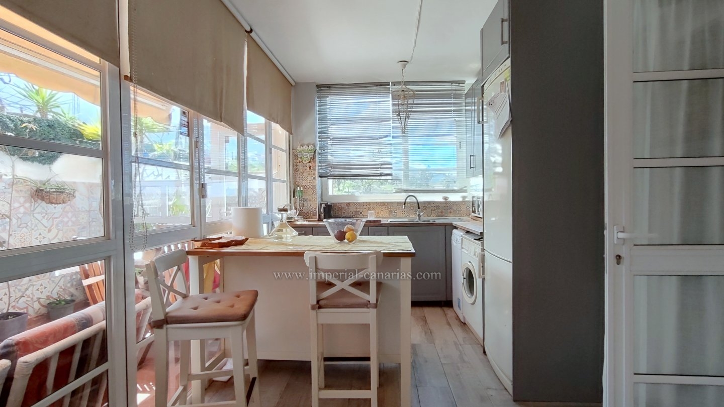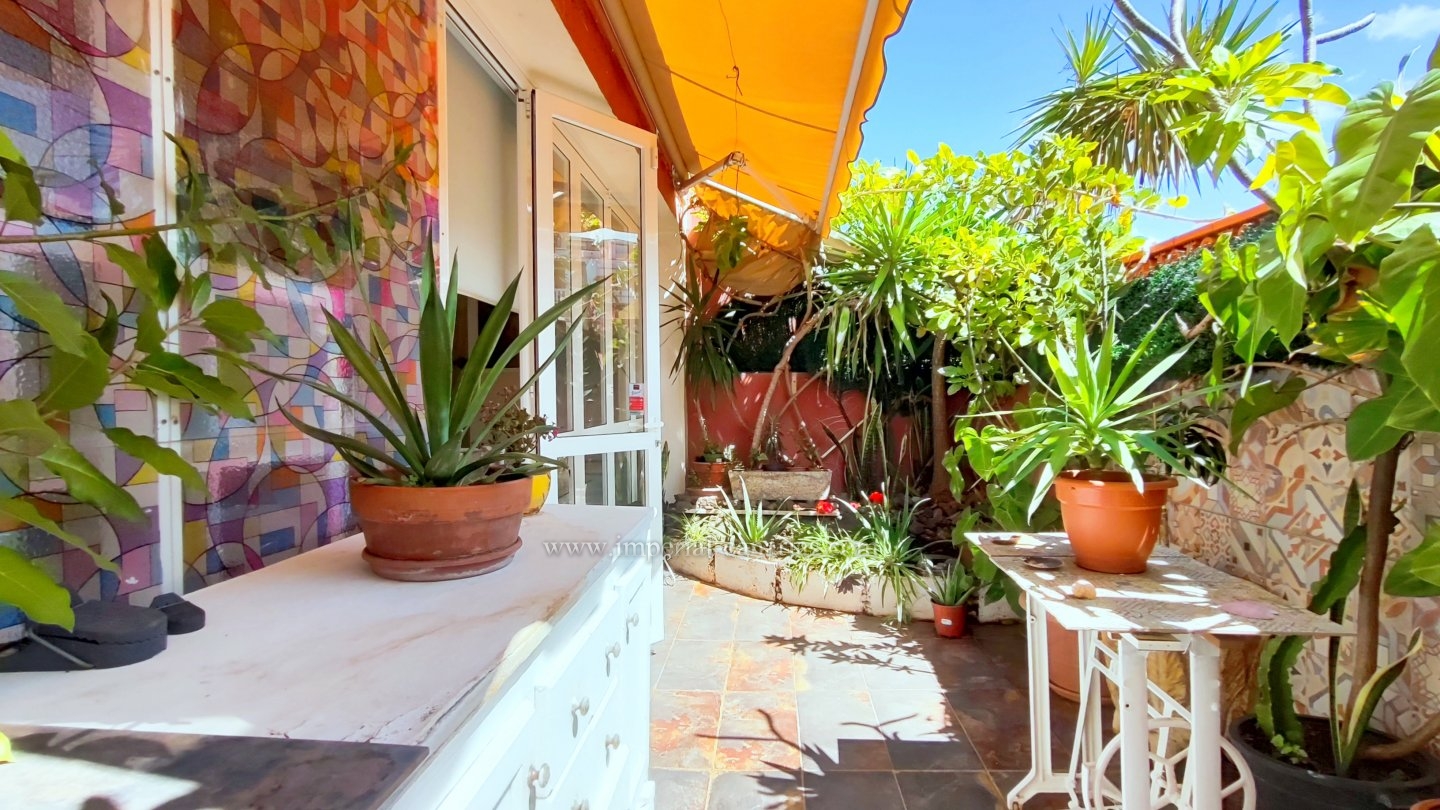 Se alquila para larga temporada bonito y confortable apartamento en el distrito de Playa Jardín, en Puerto de La Cruz. Ha sido reformado. Dispone de varias terrazas delimitadas con varios ambientes, jardín, zona chill out, con mobiliario de exterior y toldo para los calurosos días y zona de barbacoa con vistas al mar y al Teide. La vivienda se compone de una acogedora terraza interior a modo de jardín de invierno situado justo en el hall a modo de bienvenida. El salón, el comedor y la cocina están integrados en la misma estancia, lo que lo hace todo muy hogareño y práctico. Dispone de un dormitorio matrimonial muy amplio con un gigantesco armario empotrado y un glamuroso tocador. Baño en suite provisto de ducha. Todas las habitaciones son exteriores. El apartamento se alquila amueblado y equipado. Los gastos de suministro no están incluidos en el precio del alquiler mensual. El wifi es gratuito. Zona tranquila, cerca de la playa, un paraíso. Apto para personas con movilidad reducida. Ideal para una o dos personas. No dispone de garaje pero hay abundante parking exterior por la zona. Negocios a proximidad.