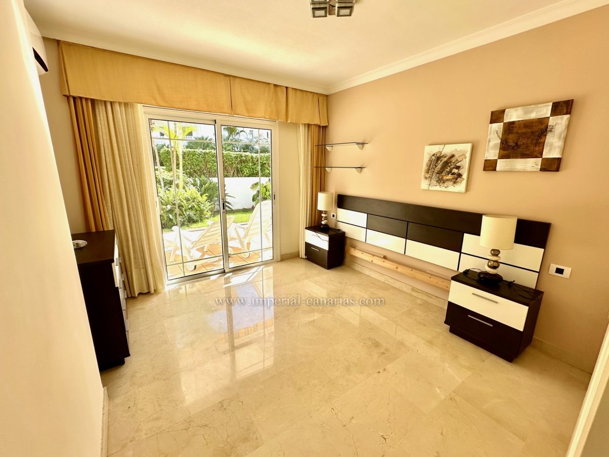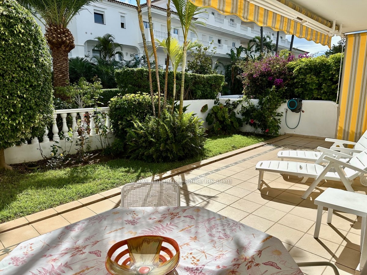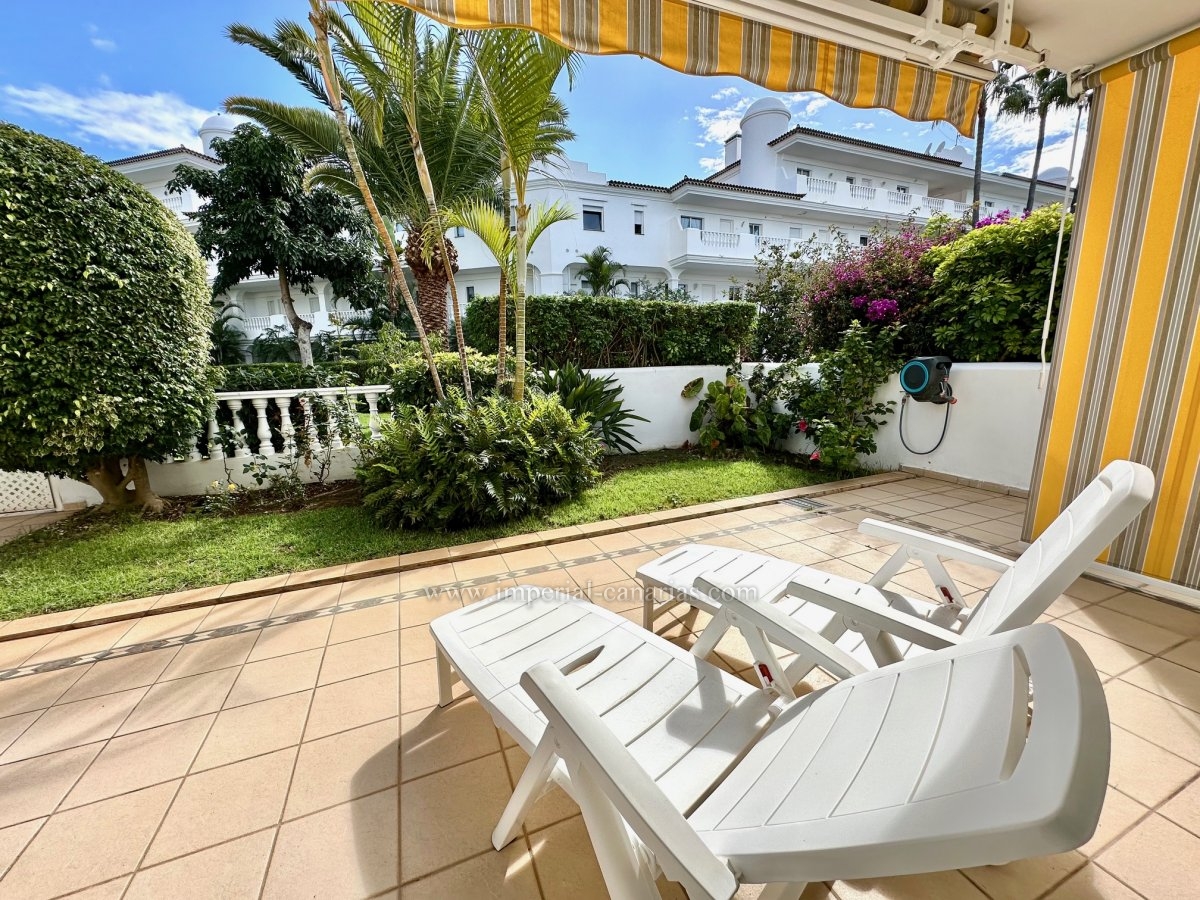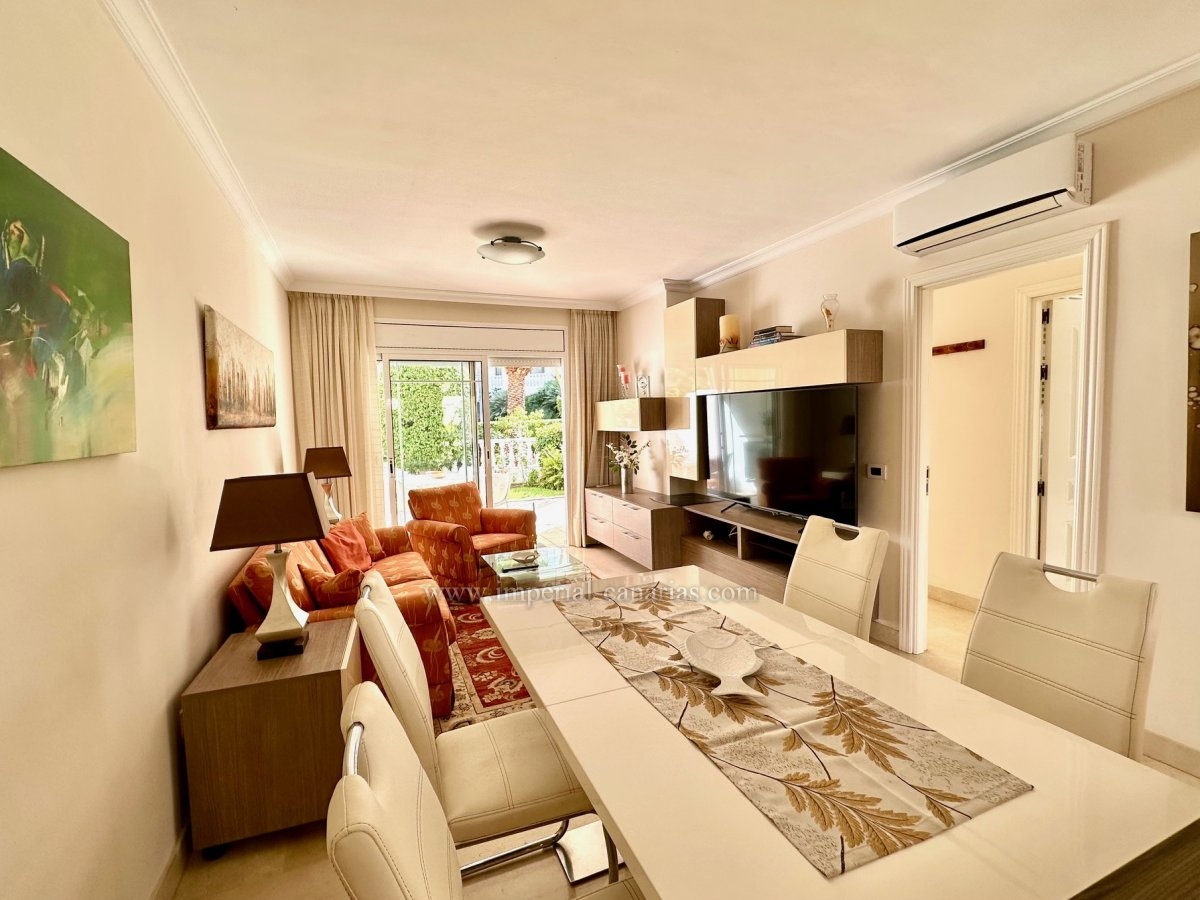 Exclusivo piso amueblado con terraza y jardín privado en residencial de alta calidad con piscina climatizada.
