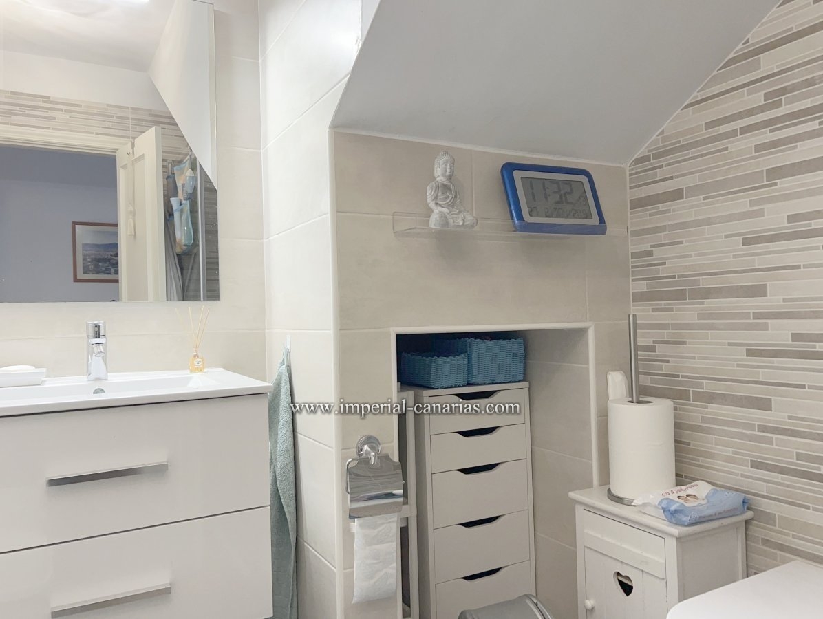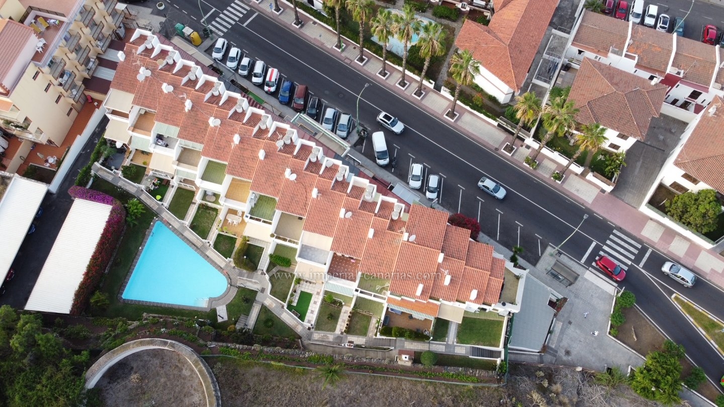 Este encantador adosado de esquina está situado en una ubicación privilegiada en Puerto de la Cruz, ofreciendo la combinación perfecta de tranquilidad y accesibilidad. Se encuentra en un pequeño y exclusivo complejo residencial con piscina, a pocos minutos a pie de hermosas playas y del animado mercado. La propiedad destaca por su diseño amplio y luminoso, y se ofrece completamente amueblada, lo que le permite mudarse o alquilar de inmediato. Cuenta con dos grandes terrazas, ideales para disfrutar del sol canario y de comidas al aire libre, así como un pequeño jardín privado que añade un toque de verdor y privacidad. Una plaza de aparcamiento propia garantiza la comodidad. Una de las mayores atracciones de esta propiedad son las impresionantes vistas al majestuoso Teide, que se pueden disfrutar desde varias habitaciones y zonas exteriores. El complejo ofrece una gran piscina comunitaria, perfecta para relajarse y refrescarse. Representa una excelente oportunidad para aquellos que buscan una casa de vacaciones o una residencia permanente en una de las zonas más deseadas de Tenerife.