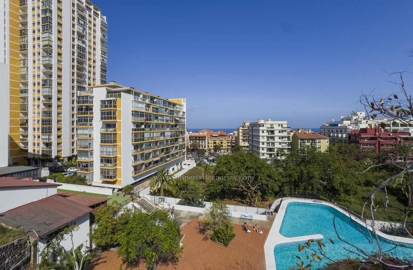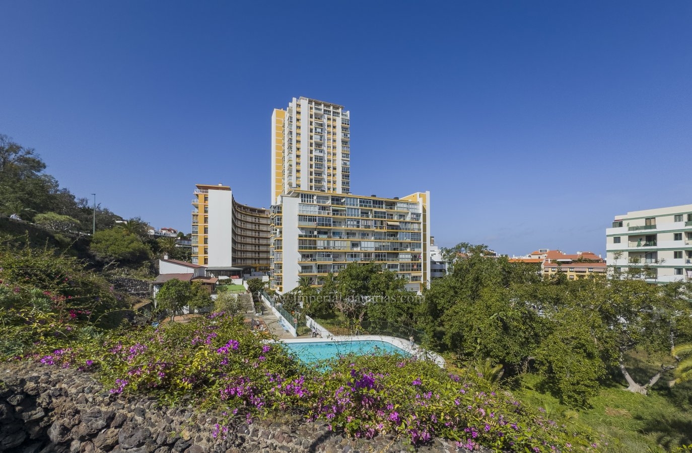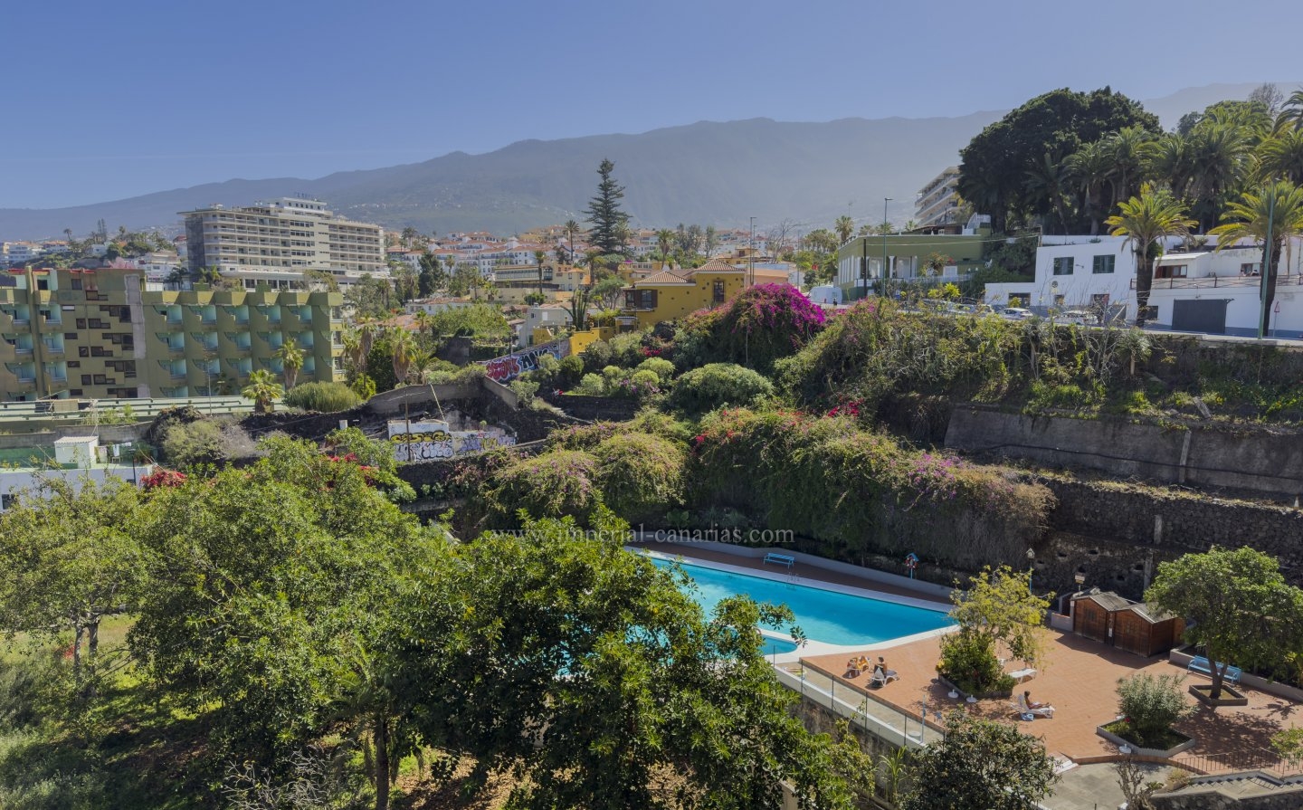 Se vende espacioso y céntrico apartamento en Puerto de La Cruz. El rascacielos local por excelencia, estratégicamente colocado entre la zona del Botánico y la de Martiánez. Son los característicos apartamentos tipo dúplex típicos de este complejo residencial. Se vende amueblado y equipado. Subiendo un pequeño tramo de escaleras llegamos al amplio salón con acceso a una pequeña terraza cubierta con amplios ventanales corredizos y telescópicos que permiten una buena apertura y luminosidad. La cocina es americana y está completamente equipada. El comedor está integrado en esta diáfana estancia. Subiendo unas pequeñas escaleras llegamos al dormitorio matrimonial, con armarios empotrados y baño en suite provisto de ducha y de bidé. Desde el dormitorio se tiene acceso a una terraza desde la que se divisa la gran piscina, el solarium y sus bellos jardines además de parte buena parte de la ciudad. El complejo dispone de varios ascensores, por lo que es apto para personas con movilidad reducida. Gran piscina comunitaria reducirá el estrés y le permitirá estar en forma. En el hall del Edificio hay una pequeña biblioteca y zona de lectura. Este es la propiedad ideal para las personas que se muevan en el interior del municipio por tener todo lo necesario para vivir cómodamente a proximidad, confort. El complejo dispone de pequeño aparcamiento aunque no hay tantas plazas como viviendas. Inmueble ideal par inversión. Alquilado actualmente para larga temporada y con inquilinos ejemplares.